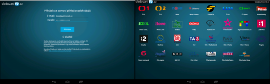 Aplikace umožňuje příjem sledovanitv.cz na zařízeních se systémem Android.Službu lze používat jen v síti partnera (připojení přes wifi), nikoliv přes síť GSM - na telefonu/tabletu je potřeba se připojit na vaši domácí Wifi síť a optimálně vypnout datová připojení telefonního operátora, aby nedošlo k problémům se spuštěním aplikace.