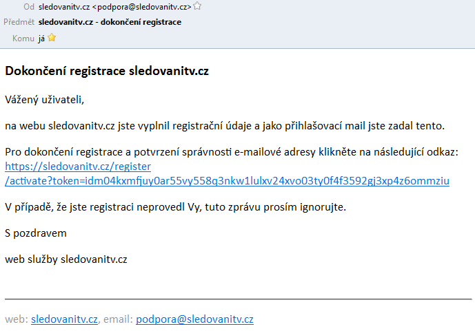 Po registraci vám na e-mail přijde potvrzovací zpráva, kde je potřebné potvrdit dokončení registrace klepnutím na odkaz.